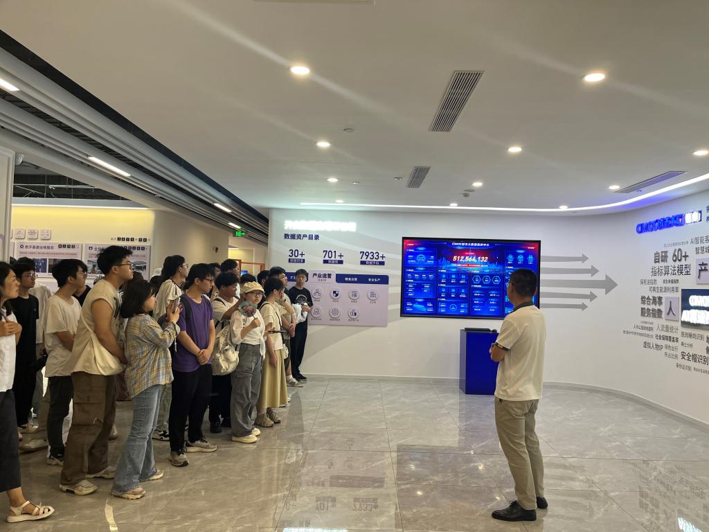 随后,师生们奔赴中德生态园青岛城市大脑投资开发股份有限公司参观学习。在城市大脑展厅内,通过各种可视化的电子屏幕实时展示着城市大脑在各个领域的应用场景。负责人以细致入微的解说和通过多媒体互动、模型展示等多种方式,生动展现了大数据技术在交通管理、公共安全、环境保护、古迹保护、掌上治理、医学影像云平台、海上综合智治应用以及数字孪生流域防洪等领域的创新应用,员工们还亲身体验了城市大脑的部分功能,如智能交通信号控制、环境监测数据分析等。参观完成后,负责人详细介绍了城市大脑的建设背景、发展历程、运营现状、显著成就以及未来规划。他强调,城市大脑作为智慧城市的核心,通过大数据、云计算等技术手段,实现了对城市运行状态的实时监控和智能管理,提升了城市治理的效率和水平。师生们就城市大脑如何通过数据驱动决策、优化资源配置以及人才需求等方面与现场工作人员进行热烈讨论。