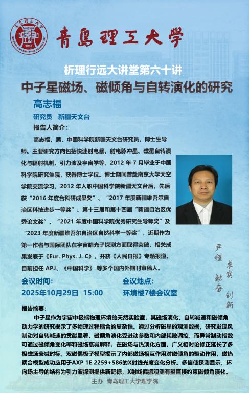 学术预告|礼贤科技大讲堂暨析理行远大讲堂第60讲:中子星磁场、磁倾角与自转演化的研究